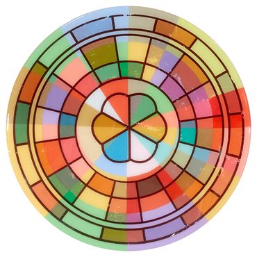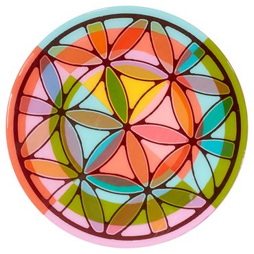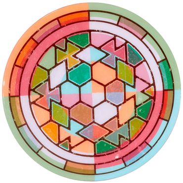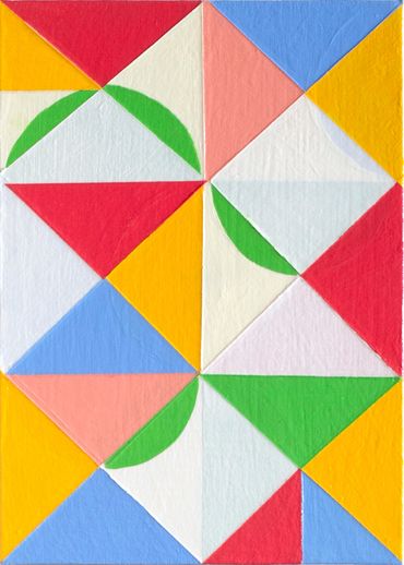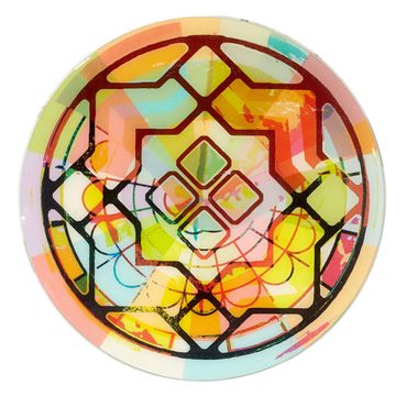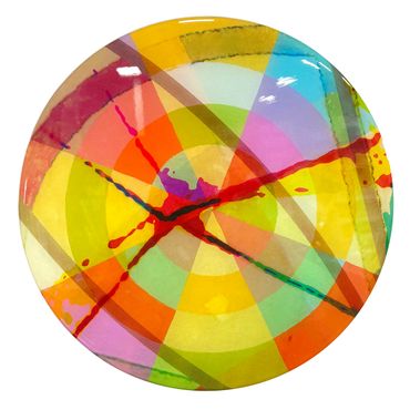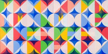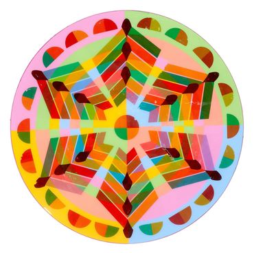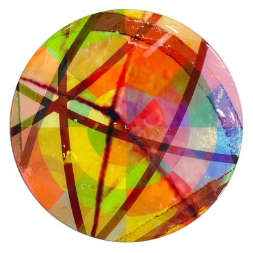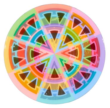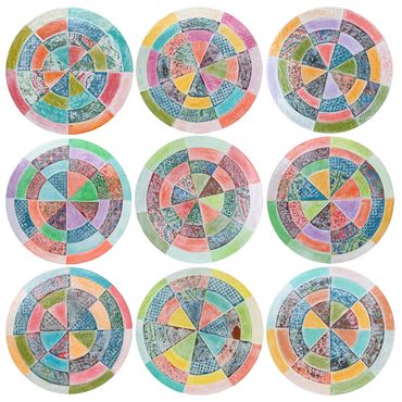 I begin my mixed media paintings by mixing colors, cutting shapes, and overlapping patterns. The process of layering and mixing reveals an inner calm and also a connection to the world. I find that patterns and repetition represent an historical structure and insight into life's interlocking balance. I often see my artwork as a colorful kaleidoscope that I adored as a child.